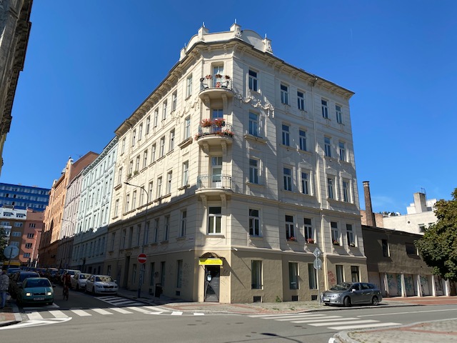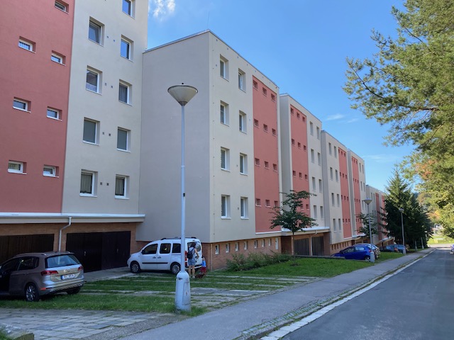 Fasáda, oprava chodníku, zateplení sklepních kójí. Chodníky – obrubníky a dlažba – výrobce Prefa